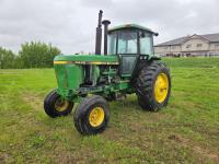 John Deere 7.6 L 6 cylinder diesel engine, 155 PTO HP, 16 speed Quad Range partial power shift transmission, cab, 1000 PTO, 3 point hitch, 2 rear hydraulic outlets, 11.00-15 front tires, 20.8-38 rear tires, factory duals