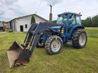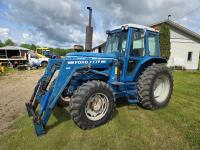 Allied 795 loader, Q/A, 84 inch bucket, Ford 4.4 L 4 cylinder 97 HP, engine, 86 PTO HP, 16 speed power shift transmission, 540/1000 PTO, 3 point hitch, 3 rear hydraulic outlets, 13.6-24 front tires, 18.4-34 rear tires