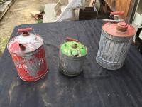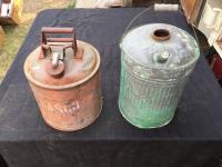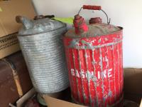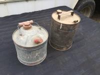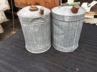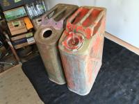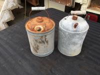 2554 (2) Jerry Cans w/ a Bowl w/ Nails & Tin