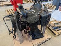 John Deere 640R loader, Q/A, 96 inch bucket, grapple, mid mount hydraulic connection, John Deere 4.5 L 145 HP, engine, 114 PTO HP, 24 speed partial power shift transmission, cab, left hand reverser, joystick, 540/1000 PTO, 3 point hitch, 3 point hitch exterior control, 3 rear hydraulic outlets, rear wheel weights, 16.9R-28 front tires, 520/85R-38 rear tires