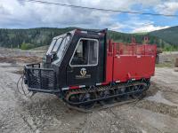 Cummins 4 cylinder diesel engine, manual transmission, differential steering, Warn 15,000 lb winch, 74 x 78 x 29 inch water tank, 28 inch rubber tracks w/ steel lugs