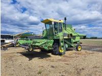 John Deere 914 13 ft pick-up header, variable speed reel, reverser, rock trap, chopper/straw spreader, grain tank extensions, 20 ft auger, A/C, radio, air ride seat, buddy seat, 30.5L-32 front tires, 16.9-24 rear tires