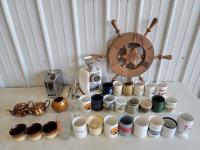 Knives, rope, rubber boots, fishing rod, lantern, Magellan GPS