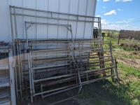 43 (3) 9 Ft 8 Inch Cattle Panels & (1) Panel w/ Man Gate & (1) Panel W/Full Gate