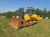 Enclosed cab, 3 speed powershift transmission, differential steering, 12 Ft single tilt angle SU blade dozer, drawbar, 30 inch track pads, single grousers