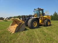Enclosed cab, 4 speed powershift transmission, 6 yard bucket, counter weight, 26.5-25 tires