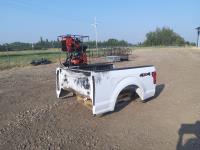 Quicke Q980 loader, 94 inch bucket, grapple, New Holland 7.5 L 6 cylinder 125 HP, diesel engine, 100 PTO HP, 18 speed power shift transmission, cab, A/C, radio, air ride seat, 540/1000 PTO, 2 rear hydraulic outlets, 14.9-28 front tires, 18.4R38 rear tires