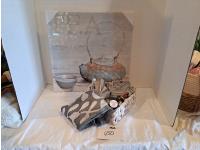 563 Vase, Floral Arrangements, Snow Globe, Table Cloth (Unused)