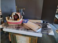 577 Basket, Table Cloth, Cutting Board, Tea Towels (Unused)