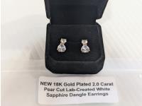 5016 Smartlife 18K Gold Plated 2.0 Carat Pear Cut Lab-Created White Sapphire Dangle Earrings (Unused)