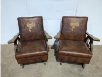 1678 (2) Brown Faux Leather Wagon Wheel Rocking Chairs