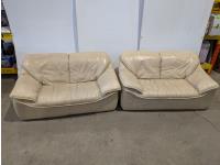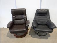 1677 (2) Leather Swivel Chairs, Foot Stool and End Table