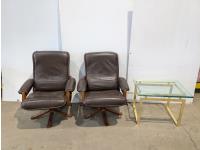 1712 (2) Leather Swivel Chairs and Glass-Top End Table