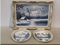 1668 (3) Framed Woneta Zubiss Mountain Scene Paintings