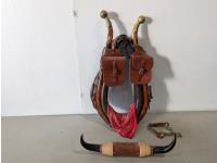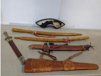 Fantasy display knife, (2) swords, dagger, machete and tooled leather gun scabbard