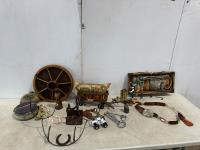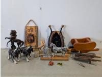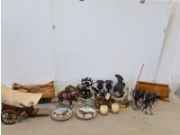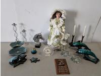 Horses and wagons, candles, (2) collector horse plates, moose candle holder
