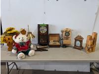 (2) vintage telephones, clocks, lamp, candle holders, planter