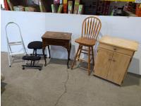 1675 (2) Lamps, (2) Stools, Ironing Board and Artificial Lamp
