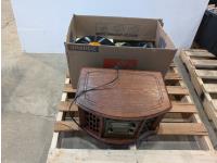 Sony CD player, Samsung DVD player, crokinole board, cribbage boards, poker chips, cards