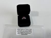 2098 Platinum Plated 3.0Ct. Emerald Cut Lab-Created Pink Sapphire Resizable Ring (Unused)