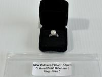 2100 Platinum Plated 10.0 mm Cultured Pearl Size 5 Ring (Unused)
