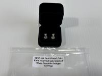 2102 18K Gold Plated 2.0Ct. Each Pear Cut Lab-Created White Sapphire Dangle Earrings (Unused)