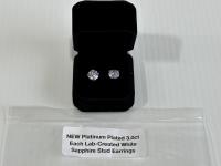 2103 Platinum Plated 3.0Ct. Each Lab-Created White Sapphire Stud Earrings (Unused)