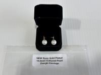 2104 Rose Gold Plated 10.0 mm Cultured Pearl Dangle Earrings (Unused)