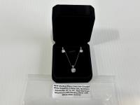 mounted in 925 sterling silver with white gold overlay, 16 inch -18 inch adjustable necklace, stud earrings