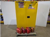 1362 Justrite Sure-Grip EX 45 Gallon Capacity Flammable Liquid Storage Cabinet and (4) Jerry Cans