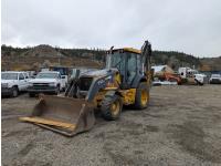 Enclosed cab, A/C, air ride seat, control pattern change, pilot controls, powershift transmission, 93" 4 in1 front loader bucket, ripper tooth, asphalt cutter, 20' max dig depth (extended), loader bucket, 20 inch dig backhoe bucket, manual coupler, 1 front auxiliary hydraulics, 1 rear auxiliary hydraulics, stick, outriggers, 14-17.5 front tires, 21L-24 rear tires
