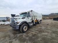 International MAXFORCE DT 255 HP diesel engine, DEF required, engine brake, Allison 3500_RDS_P} 4th Generation Controls; Wide Ratio, 5-Speed, With Overdrive; On/Off Hwy; Includes Oil Level Sensor, With PTO Provision, Less Retarder. 5 speed automatic transmission, SIDE-TILT LIVE FLOOR W/ LONGITUDINAL CONVEYOR, A/C, cruise control, air ride driver seat, stereo, beacons, chain holders, Side tilt live floor with longitudinal conveyor, Dana Splicer spring suspension, 1,600 lb front axle, 23,000 lb rear axles, 6:14 ratio, 179.0 inch WB, ENG PTO HRS 58.2, 315/80R22.5 tires