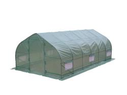 10 ft X 20 ft walk in Peak Green House. Durable tear resistant leno PE cover. Includes Dirt skirts for pest prevention. Roll up door, and 24 inch x 16 inch mesh window.