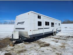 Freightliner Chassis, Cummins 360 HP ISB 6.7 engine. air ride suspension, engine brake, Allison transmission, Onan 7500 Quiet diesel generator with 960 hrs. 275/70R22.5 tires on aluminum rims, Ultra Levelling hydraulic system, 4 hydraulic slide outs, rear bed room, bunk beds, fridge, freezer, roof mount AC, Dirt Devil vacuum cleaner, indoor and out door TV. Satellite, oven, microwave, full bathroom, electric out door awning, all operator manuals, rear trailer tow hitch