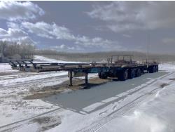 8 ft wide, main wood deck 17 ft, 6 ft beavertails with small flip over ramps, spring suspension, 11R22.5 tires