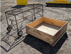 1754 Wheeled Metal Garden Cart and 43 Inch W X 43 Inch D X 11 Inch H Untreated Wood Garden Box