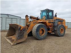 20 ft 5 inch reach, Enclosed cab, A/C, air ride seat, 4 speed powershift transmission, 3 way steering, 130HP diesel engine, hydraulic Q/C coupler, 1 front auxiliary hydraulics, 460/70R24 tires