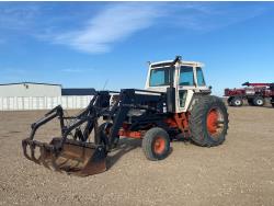 Case 70 loader, 84 inch bucket, International Harvester D-282 4.6 L 6 cylinder 66 HP, diesel engine, 63 PTO HP, 10 speed partial power shift transmission, open station platform, 540 PTO, 2 rear hydraulic outlets, 6.5-16 front tires, 15.5-38 rear tires