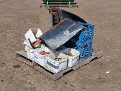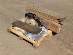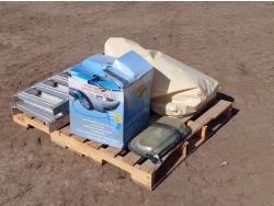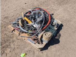 (2) trailer straps, (2) marker light panels, steel braided cable, fuel transfer nozzle, Qty of miscellaneous belts, wire and hose.