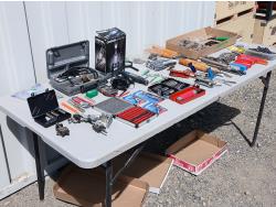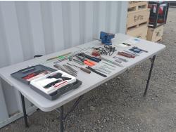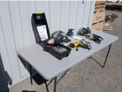 (1) Versa saw, (1) Hammer drill, (1) Miter saw stand, (1) 6 inch Belt/disc sander, (1)12.5 amp Heat gun.