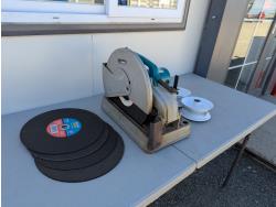 1830 14 Inch Makita Chop Saw and (2) Turf Tire Rims