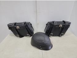 1106 Leather Motorcycle Saddle Bags and Size Large Motorcycle Helmet