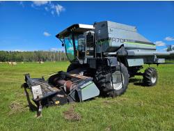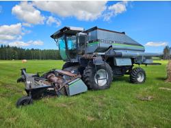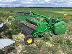 John Deere 912 12 ft pick-up header, variable speed reel, reverser, chopper, A/C, radio, buddy seat, 7.6L 6 cylinder diesel engine, hydrostatic transmission Been Shedded, well maintained, 30.5-32 front tires, 14.9-24 rear tires