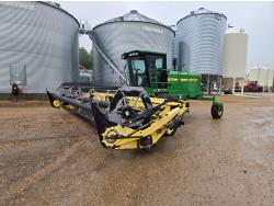 Honey Bee WS25 triple delivery rigid draper header, pickup reel, fore & aft, Roto Shear on both ends crop dividers, factory built in transport header transport, John Deere 4 cylinder diesel engine, A/C, buddy seat, 18.4-26 front tires, 14L-16.1 rear tires