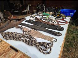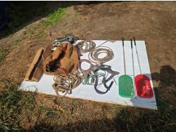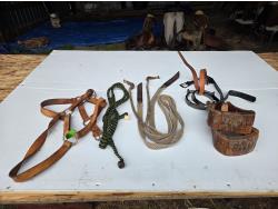 205 Ropes, Halters, (2) Stock Paddles, Decorative Pot Hanger, Leather Bag
