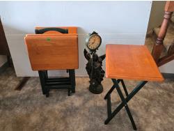 17 (4) Wooden TV Trays & Clock