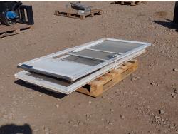 (1) 58 inch W x 61 inch T window, (1) 65 inch W x 61 inch T window, (1) 24 inch W x 48 inch T window glass, (2) 24 inch W x 25 inch T window glass, includes glass frames