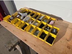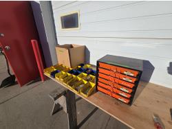 5262 Qty of Poly Bins with Metric Bolts & 6 Drawer Parts Organizer with Contents