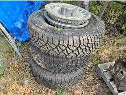 Golf clubs, outdoor mat 9 ft x 18 ft (3) tarps, folding side table, outdoor light clips, hose, hot dog roasting sticks
