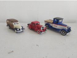 scale unknown, (1) 1940's Ford Woody Wagon, 1932 Chev Fire Chief, 1923 Chev Pickup (Bank)